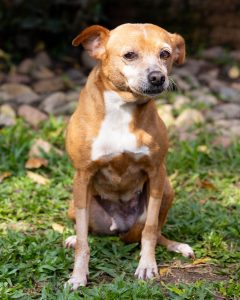 Fui resgatada pelas tias do Instituto após entrar em uma obra me arrastando, estava cheia de lesões na pele e não conseguia parar em pé. Também tinha fraturas na minha pelve. Fui medicada, fiz fisioterapia e estou pronta para ganhar uma casa.